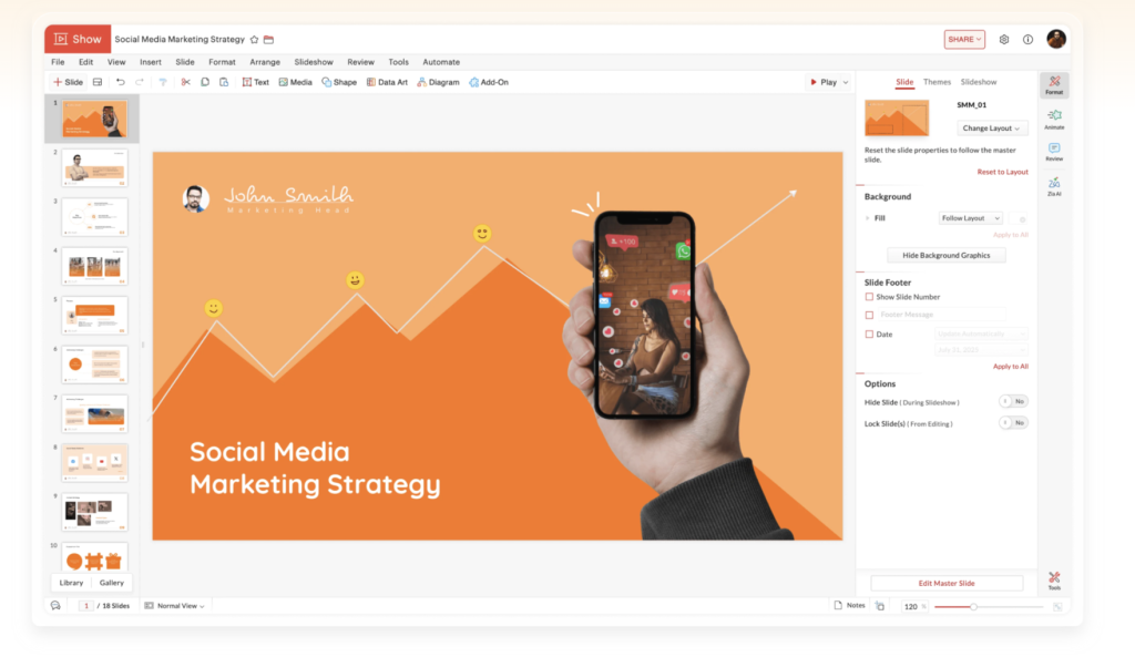 • Smart slide layouts that adjust automatically